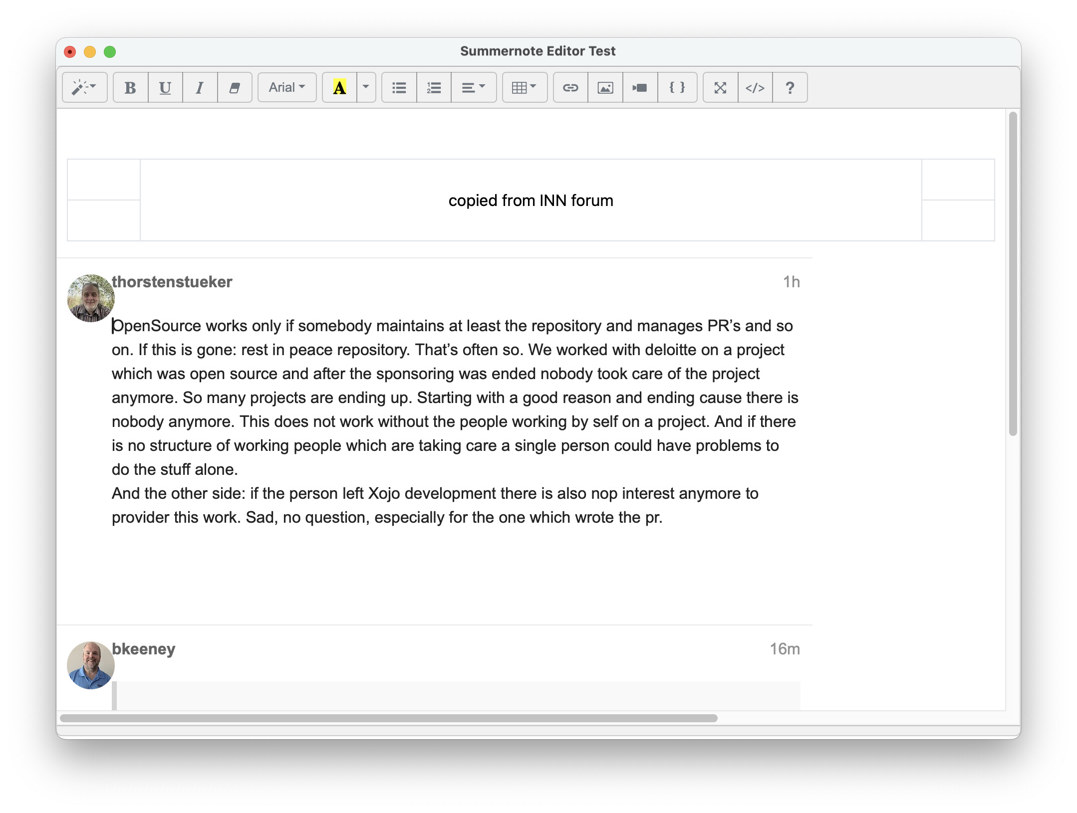 Iāve looked at FTC, but since Iāve managed to build an htmlviewer containing the summernote editor inside. works fine and I have all I need in a text editor with that. (plus I managed to add some table editor inside that works fine too !)