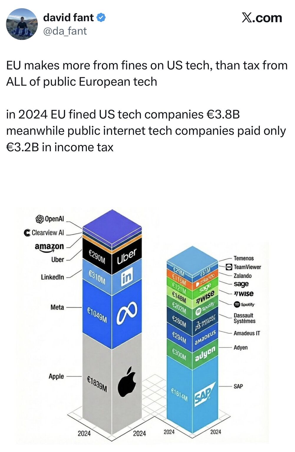 Fair would be if EU would invent tarrifs for software services, cloud services and so on. So american economy would have to pay for their exports of Software and Cloud services. Would be really nice cause that would open chances for european software vendors to make business which is now dominated by american companies. If trump says 50% Eu could say: digital: 50% and trump would see: it is the same amount on both sides. But..will never be happened. Sadly.
