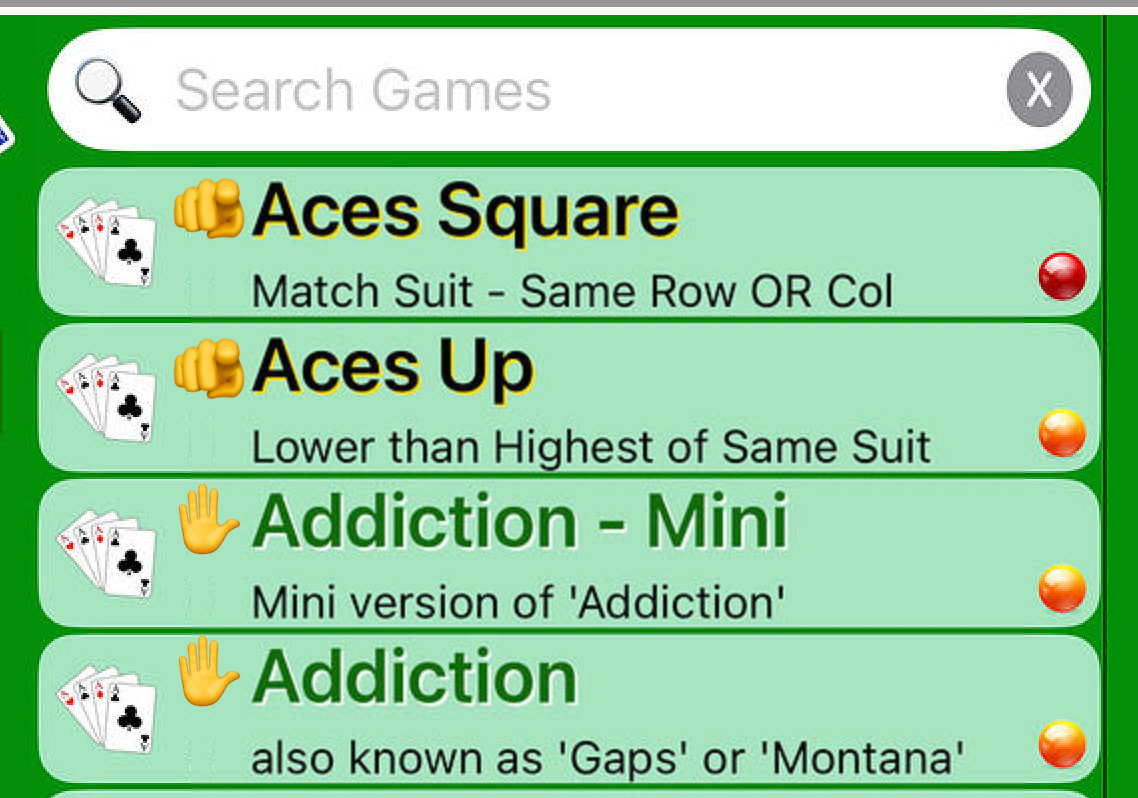 In this screen shot, Aces Up is a point-n-click style game, while Addiction is a drag-n-drop style
