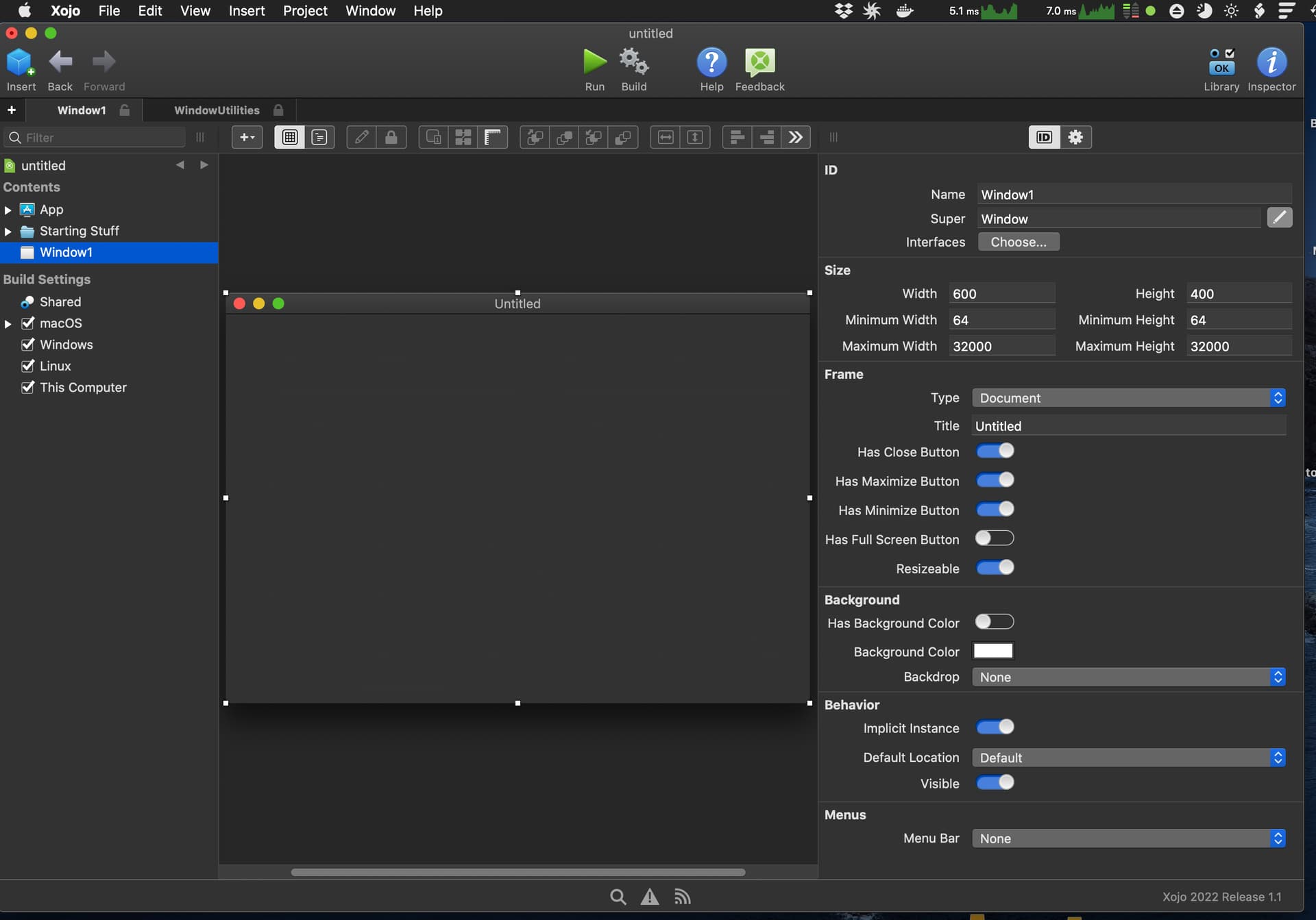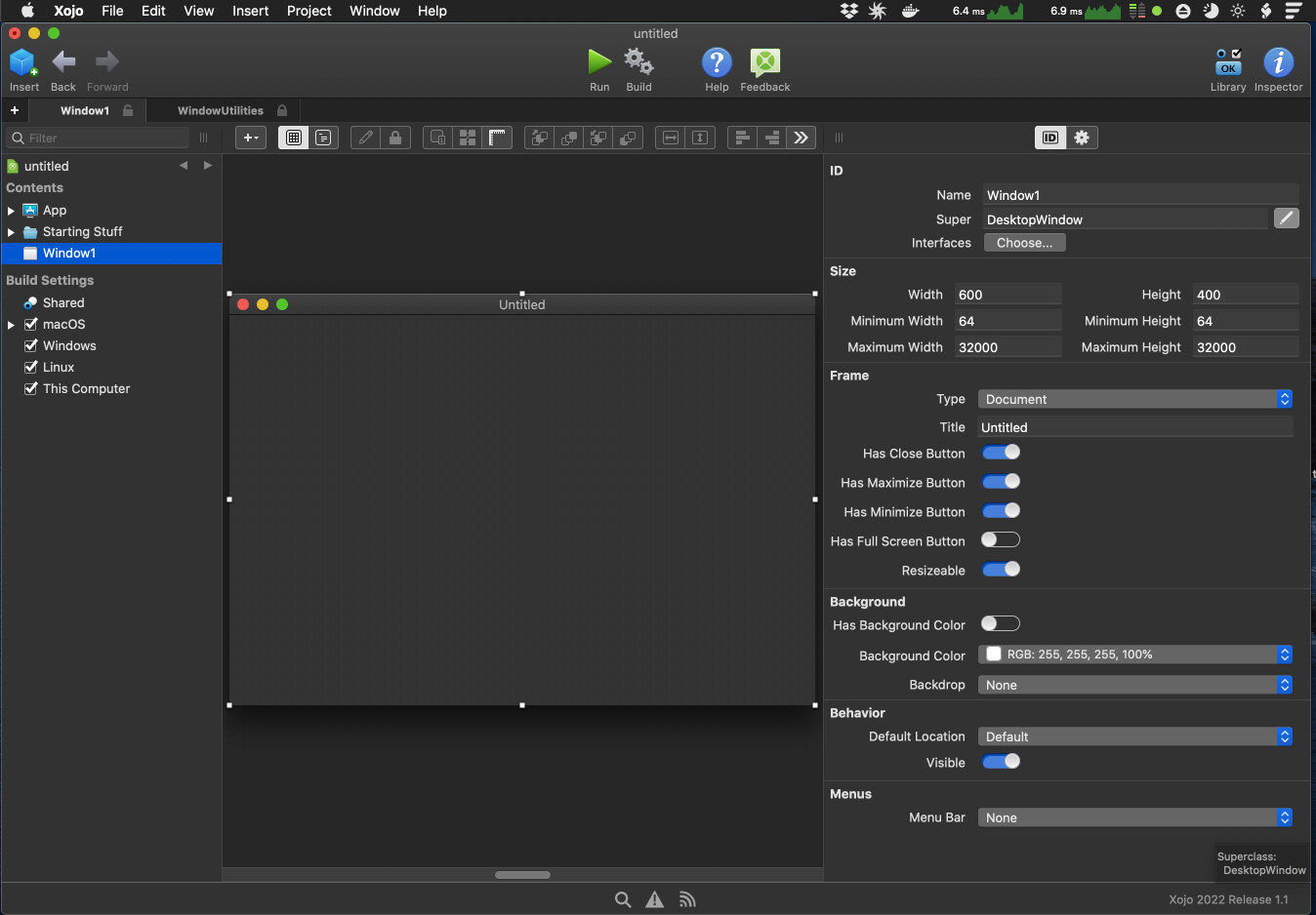 Window Implicit Instance is a subtle evil. Apparently I wrote about in 2016 Xojo Programming – BKeeney Briefs. I think it’s stupid this is under the ‘advanced tab’.